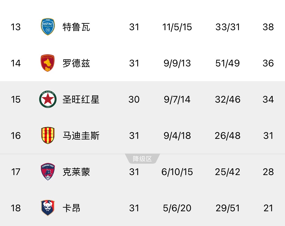 04月19日宣 在凌晨进行的第31轮法乙联赛,卡昂主场0-3不敌保级对手马蒂格。赛后卡昂积21分在法乙积分榜垫底,提前3轮从法乙降级。
