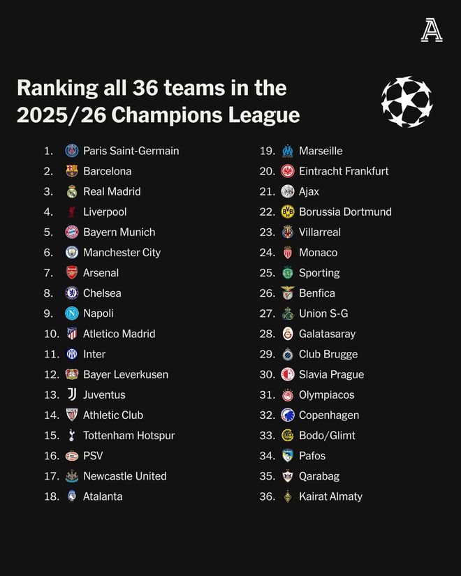 雷速体育9月16日宣 新赛季欧冠即将打响。今日,著名媒体TA公布了欧冠各队实力评级,其中卫冕冠军巴黎圣日耳曼高居榜首,巴萨与皇马则分列二三。