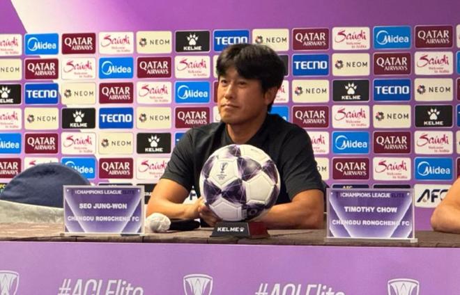 在客战蔚山HD的赛前新闻发布会上,徐正源表示:“很开心这赛季我们球队能参与亚冠联赛。我也是时隔多年再次回到蔚山,在这里召开新闻发布会,心情格外激动。成都蓉城是第一次作为亚冠参赛球队打进亚冠精英联赛,这份荣誉让我既高兴又深感责任重大。但光有喜悦远远不够,接下来我们必须全力备战——只有做好充分准备、认真对待每一场比赛,才能让对手知道,我们绝非轻易可击败的队伍。对手实力很强,球员个人能力也十分出色,不过对我们而言,关键是打好自己的风格、展现球队的特点。结合目前在中超的排名,接下来我们会全力准备,做好万全应对。”