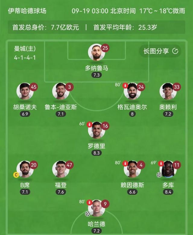 从赛前公布的首发名单来看,曼城连续3场排出了相同的首发11人,此前2场比赛曼城分别3-0曼联,2-0那不勒斯,共进5球且1球未丢。