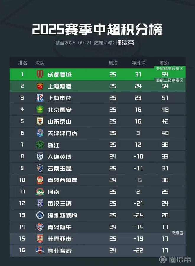 - 中超 | 一场31,让中超争冠大乱,前2只差2分,成都蓉城紧追领头羊