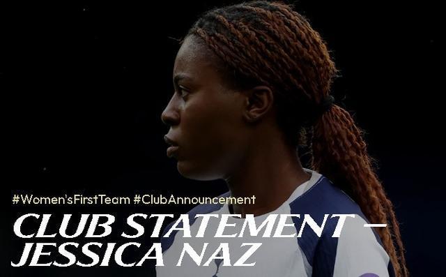 直播吧9月25日宣 热刺官方发表声明,谴责对女足球员杰西卡-纳兹的种族歧视行为。