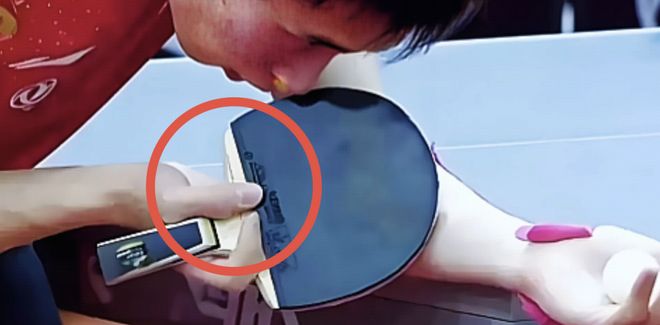 现在中国队的直板,几乎是一致性的后边三个手指伸直,这样可以最大化正反手击球的质量——相对来说发球和短球的灵活性受一些影响。这也在一个侧面说明了中国队培养选手上的路径依赖:因为之前王皓打出来了,所以后续培养选手的时候,就约定俗成的走王皓的既定路线。作为一个表现,普遍的握拍很深,甚至徐海东尝试过把板子挫成一个铲子,来增加握拍深度,以加强力量: