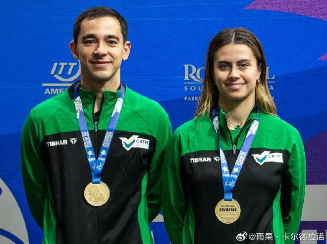 10月19日,巴西乒乓球名将雨果更新社媒,晒出自己在2025泛美洲锦标赛夺冠照片。本届比赛,雨果夺得男单冠军,已经取得5连冠,同时他也搭档布鲁娜夺得自己在泛美洲锦标赛的首个混双冠军。