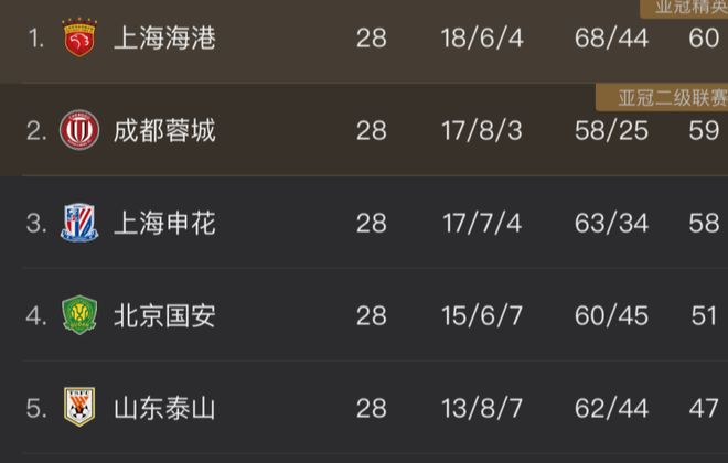 在目前的中超积分榜上,上海海港暂时以60分领跑,成都蓉城59分紧随其后,上海申花58分。