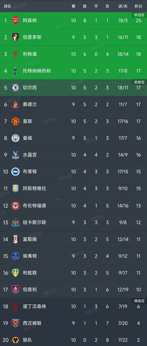- 英超 | 英超第10轮结束了7场比赛,最新积分榜如下!