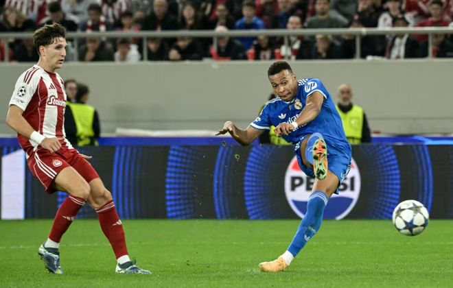 北京时间11月27日凌晨,欧冠联赛阶段第5轮一场比赛,皇家马德里客场4-3逆转奥林匹亚科斯,姆巴佩上演大四喜,积分达到12分,升至积分榜第五位。