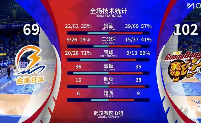 - CBA | 广东宏远10269合肥!球员评分:4人满分,3人良好,1人不合格