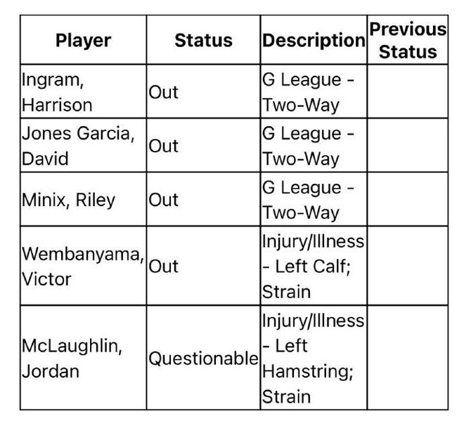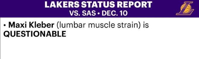 - NBA | 湖人vs马刺伤病报告:文班缺席东詹领衔冲四强克勒贝尔出战成疑