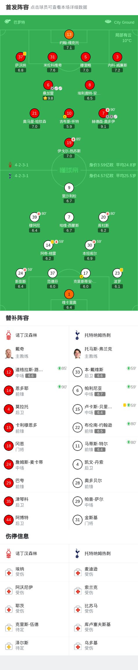- 英超 | 剑南春丨热刺客场03诺丁汉森林,奥多伊2射1传,桑加雷2传1射