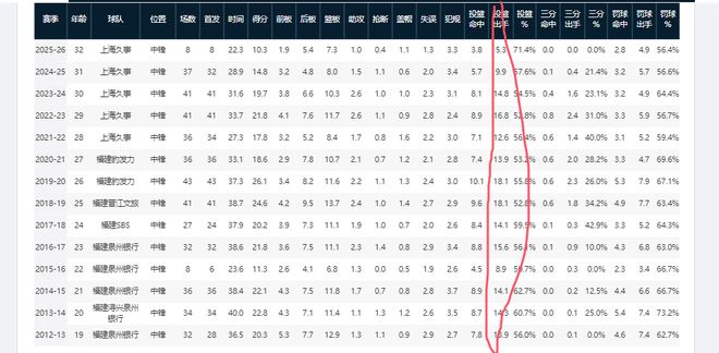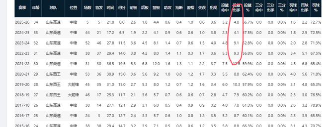 要知道,前四个赛季,王哲林场均出手最少也有9.9次,最多可达到16.8次。由此可见,他已从球队内线核心,逐渐变成了蓝领中锋。