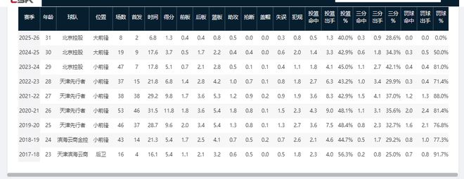 孙桐林C类合同,上赛季场均仅能为山东男篮贡献1.8分,本赛季5次出场后,场均只有0.2个篮板,其余得分数、助攻数、盖帽数均挂零。