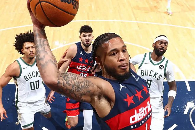 可没想到,惠特莫尔并没有被奇才队重视,根本没给他多少机会。奇才生涯的季前赛,对阵猛龙队也只有16分钟的时间。而且看了那场比赛,惠特莫尔的状态其实不错,进攻效率不俗,防守也很积极。但这样的表现,次节却没有得到任何的进攻机会。后面到了常规赛初期,惠特莫尔多次得分上双,包括两场高效20分。但11月底奇才队给了尚帕尼更多的机会,相比于惠特莫尔,他的无球能力和篮板能力更受到主教练的青睐,所以惠特莫尔的上场时间因此暴跌。而惠特莫尔受伤前,也就是12月份出战了3场比赛,12月2日奇才队逆转雄鹿队的比赛,惠特莫尔14投8中得到了17分,且只打了19分钟。